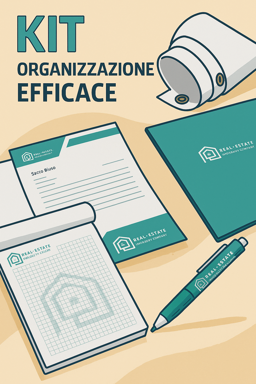 Bloc Notes Personalizzati: Pratici bloc notes personalizzati con il vostro logo, ideali per prendere appunti durante le riunioni, le visite e le negoziazioni immobiliari.